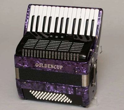 Golden Cup "Modell 25" er et skremt litet og lett 2-korig pianospill med violin som er perfekt for barn og ungdommer. Også musikeren som bare vil forgylle sitt musikkutøvende med litt trekkspillsound uten avanserte bassharmonier.